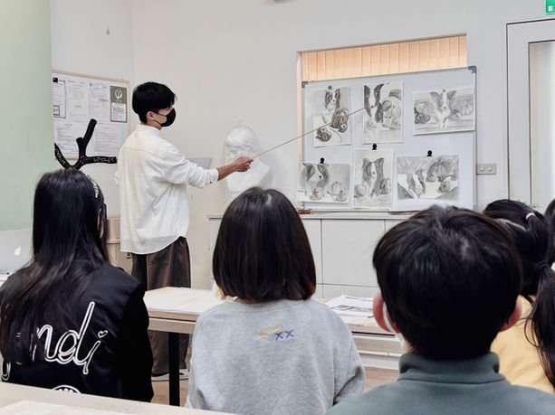 集訓中安排段考式模擬訓練,搭配 老師即時講評與個別回饋,幫助學生熟悉應試壓力與作畫節奏。